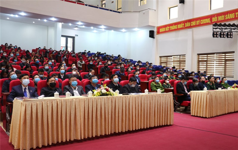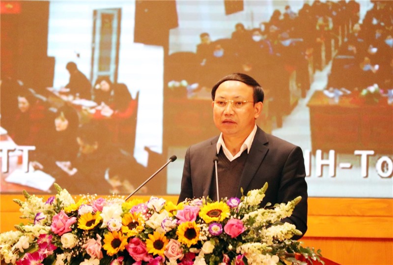 Tại hội nghị, đồng chí Nguyễn Xuân Ký, Bí thư Tỉnh ủy, Chủ tịch HĐND tỉnh đã trực tiếp quán triệt các nội dung trọng tâm Nghị quyết số 02-NQ/TU ngày 02/12/2020 “Về phương hướng, nhiệm vụ năm 2021” của Ban Chấp hành Đảng bộ tỉnh. Đồng chí nhấn mạnh: Năm 2020, trong bối cảnh gặp nhiều thách thức do đại dịch Covid-19 gây ra, nhưng với sự nỗ lực, cố gắng vượt bậc của Đảng bộ, chính quyền, hệ thống chính trị, LLVT, nhân dân các dân tộc và cộng đồng doanh nghiệp trong tỉnh, dưới sự lãnh đạo, chỉ đạo, điều hành đúng đắn, tích cực, chủ động, sâu sát, quyết liệt của Tỉnh ủy - HĐND - UBND tỉnh, tỉnh Quảng Ninh đã hoàn thành tốt “nhiệm vụ kép”, vừa phòng chống dịch hiệu quả, kiểm soát tốt tình hình và giữ vững địa bàn “An toàn - ổn định - phát triển”, chăm lo, bảo vệ sức khỏe nhân dân; chuẩn bị tốt và tổ chức thành công đại hội đảng bộ các cấp, có nhiều đổi mới; vừa ổn định KT-XH, nhanh chóng phục hồi sản xuất kinh doanh, lấy lại đà tăng trưởng. Tăng trưởng GRDP cả năm ước đạt 10,05%, thu ngân sách nhà nước trên địa bàn đạt 49.500 tỷ đồng, tăng 10% so với dự toán Trung ương giao. An ninh chính trị, TTATXH được bảo đảm, quốc phòng được củng cố, giữ vững chủ quyền biên giới quốc gia, tuyệt đối không để xảy ra đột xuất, bất ngờ.
