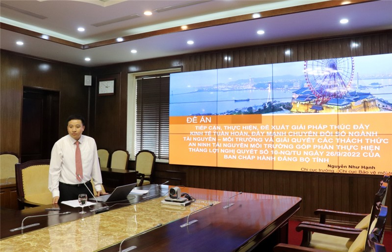 Đồng chí Nguyễn Như Hạnh, Chi cục trưởng Chi cục Bảo vệ môi trường, Sở Tài Nguyên và Môi trường trình bày đề án thi tuyển.