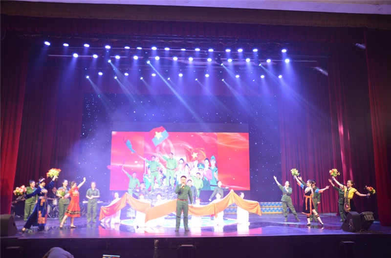 Tổ khúc “Bước chân trên dải Trường Sơn-Tiến về Sài Gòn-Đất nước trọn niềm vui” của các nhạc sĩ: Vũ Trọng Hối- Huỳnh Minh Sang- Hoàng Hà do tập thể nam nữ biểu diễn.