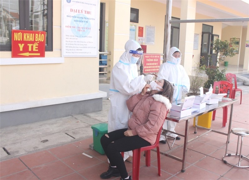 Bệnh viện Sản Nhi đã cử trên 35 lượt y, bác sĩ tham gia hỗ trợ TX Quảng Yên trong công tác phòng, chống dịch Covid-19. Ảnh chụp tại Trạm Y tế xã Liên Vị, TX Quảng Yên.