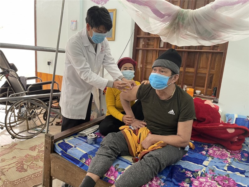 Ông Hoàng Mạnh Dương (thôn Xóm Mới, xã Đạp Thanh, huyện Ba Chẽ) được tiêm vắc xin phòng Covid-19 tại nhà do không đi lại được. Ảnh: Nguyễn Hoa