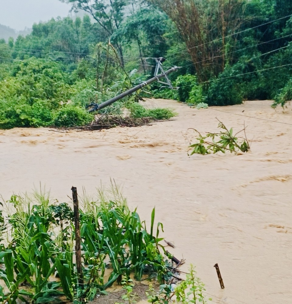 Mưa lớn làm đổ 1 cột điện dân sinh tại thôn Đồng Trà, xã Đồng Lâm (TP Hạ Long) gây mất điện cục bộ.