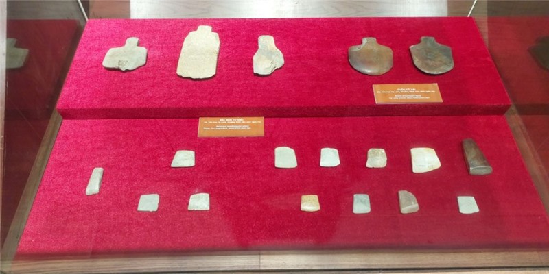 Rìu đá của người tiền sử thời Văn hóa Hạ Long trưng bày tại Bảo tàng tỉnh Quảng Ninh.