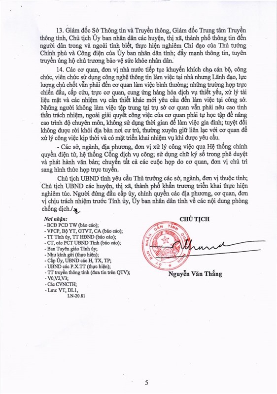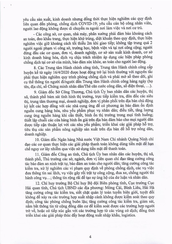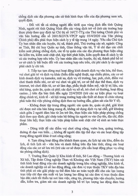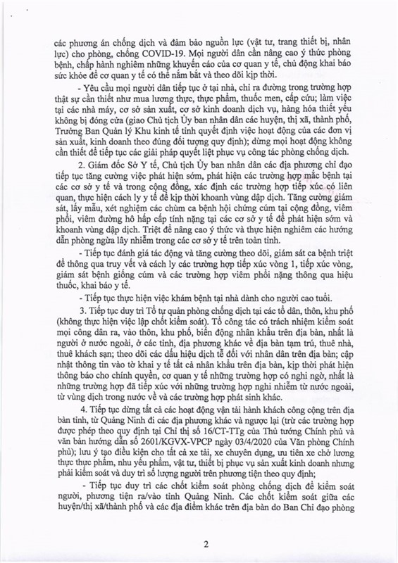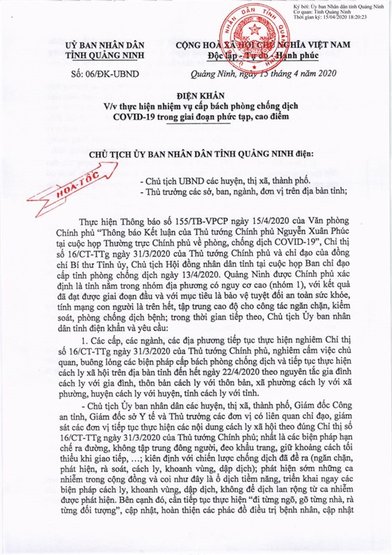 Ngày 15/4 Ủy ban nhân dân tỉnh đã ban hành Điện khẩn số 06/ĐK-UBND về việc thực hiện nhiệm vụ cấp bách phòng chống dịch COVID-19 trong giai đoạn phức tạp, cao điểm.