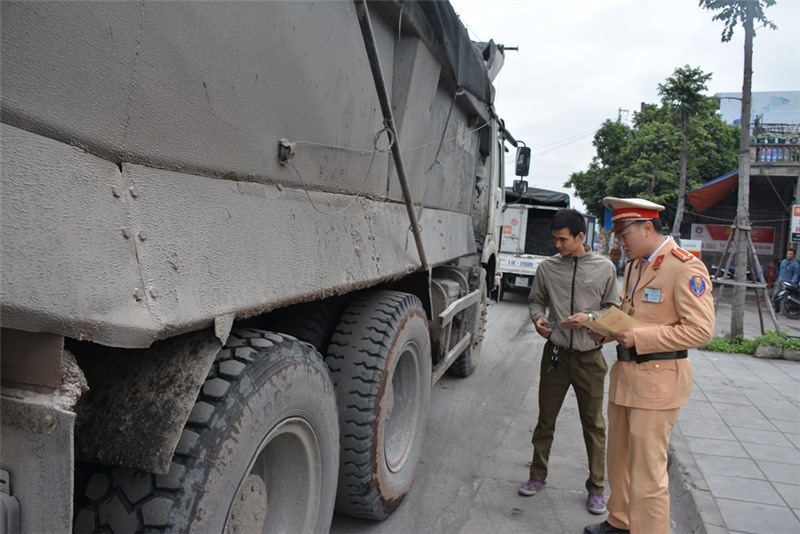 CSGT Công an Quảng Ninh kiểm tra xe ô tô tải trên Quốc lộ 18A.