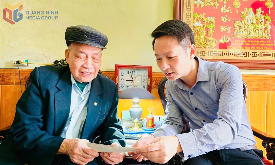 Ông Đoàn Văn Phóng, nguyên Phó Giám đốc Công ty Nhiệt điện Uông Bí (bên trái) trao đổi với phóng viên về những năm tháng xây dựng Nhà máy Điện Uông Bí.