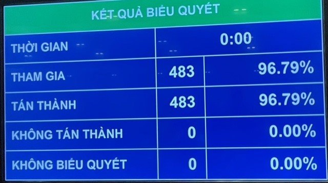 483/483 số đại biểu Quốc hội có mặt biểu quyết thông qua Nghị quyết bầu Phó Chủ tịch Quốc hội. Ảnh: VGP/Nhật Nam