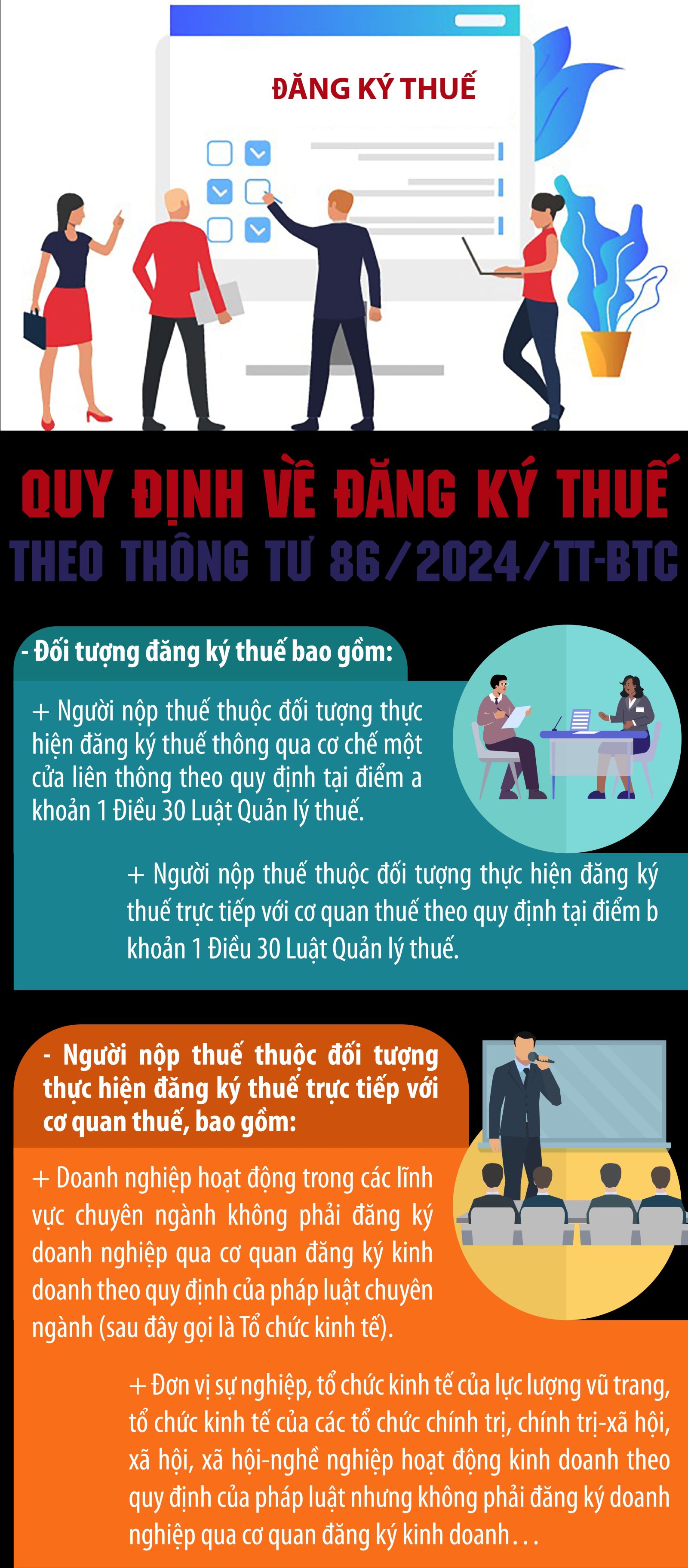 Bộ Tài chính ban hành Thông tư 86/2024/TT-BTC ngày 23/12/2024 quy định về đăng ký thuế. Thông tư có hiệu lực từ ngày 6/2/2025.