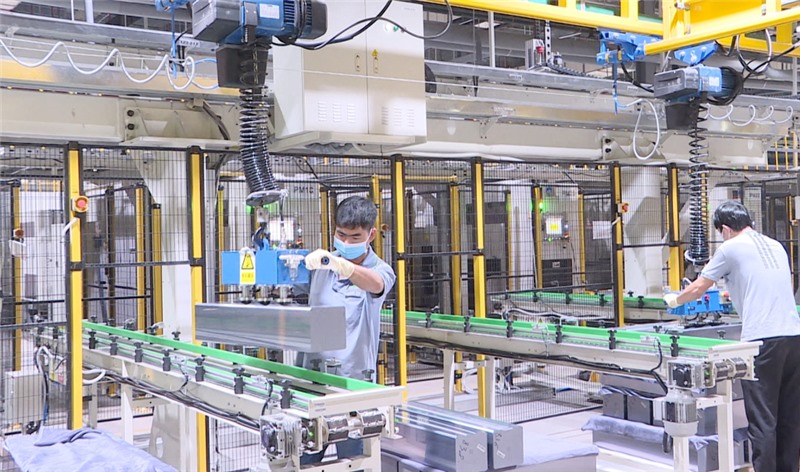 Công nhân đang làm việc tại Công ty TNHH Công nghiệp Jinko Solar (KCN Sông Khoai, TX Quảng Yên).