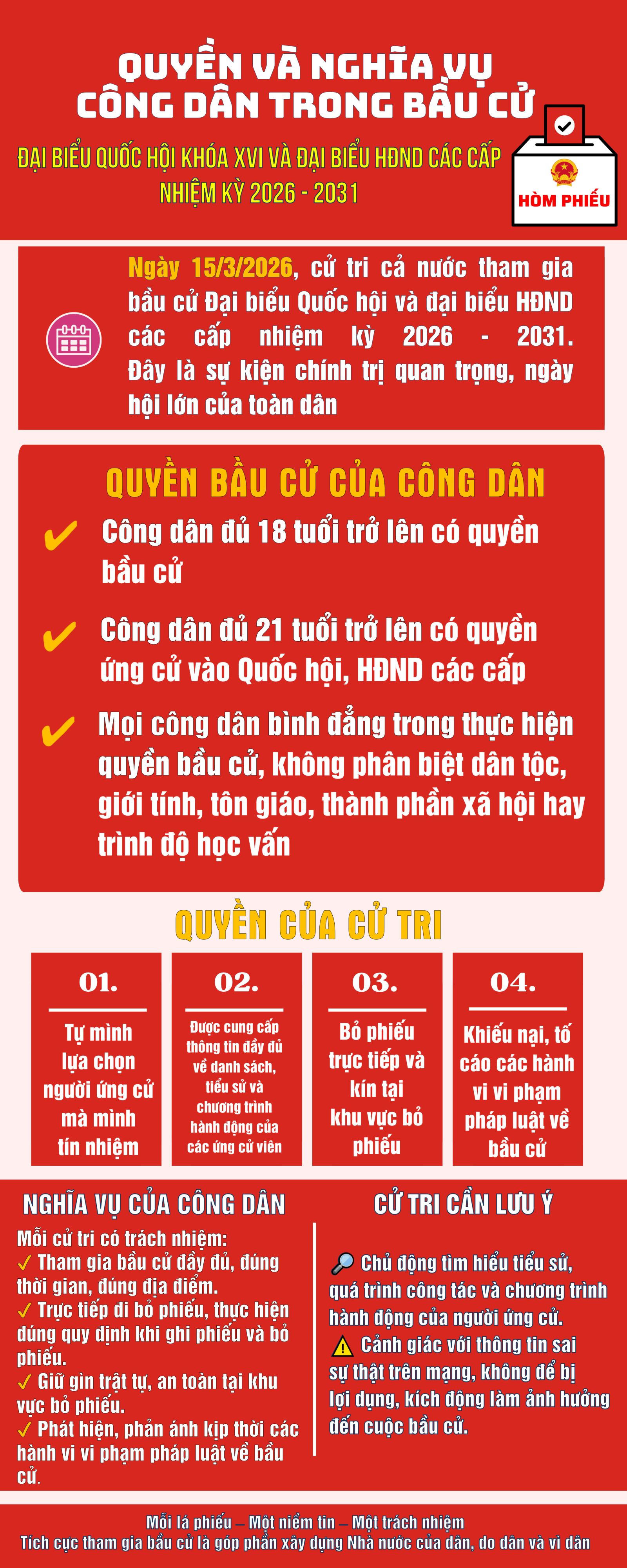 QUYỀN VÀ NGHĨA VỤ CỦA CÔNG DÂN TRONG BẦU CỬ Đại biểu Quốc hội khóa XVI và HĐND các cấp nhiệm kỳ 2026-2031