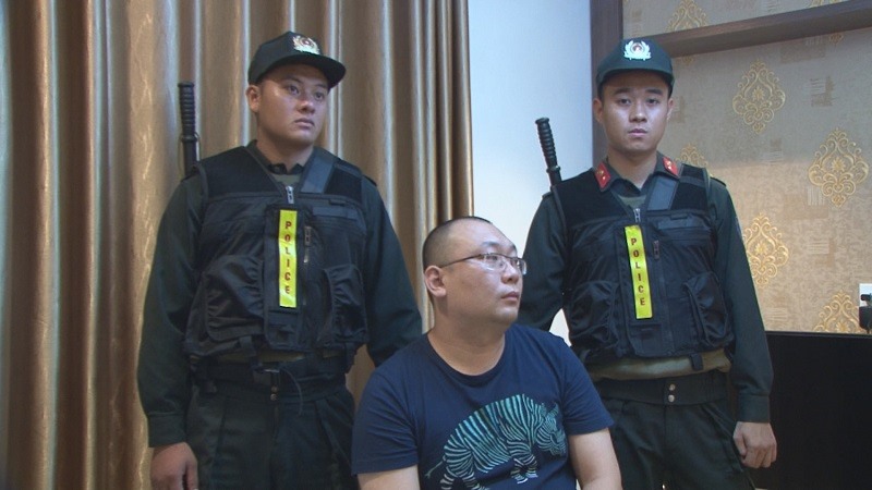 Đối tượng người Trung Quốc (giữa) trong nhóm hơn 20 đối tượng phạm tội công nghệ cao, do Công an tỉnh phát hiện, bắt giữ hồi tháng 6/2019.