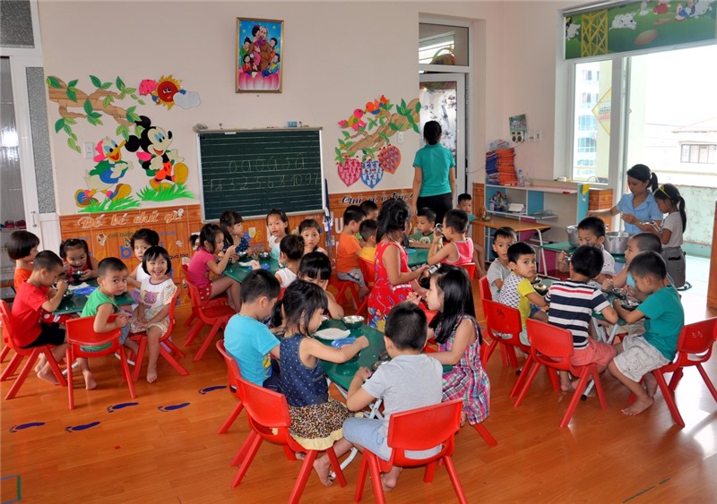 Bữa ăn của các cháu Trường Mầm non Hoa Lan (TP Hạ Long).
