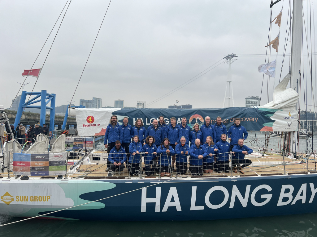 Đội Ha Long bay - Việt Nam tham gia Cuộc đua thuyền buồm vòng quanh thế giới Clipper Race mùa giải 2023-2024 chụp ảnh lưu niệm trước khi rời Cảng tàu khách quốc tế Hạ Long để tiếp tục chặng đua số 8.