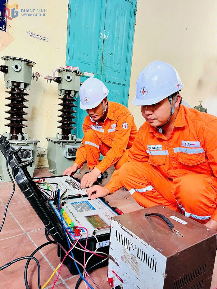 Công nhân Trung tâm Thí nghiệm điện Quảng Ninh thử nghiệm trạm biến áp khách hàng.