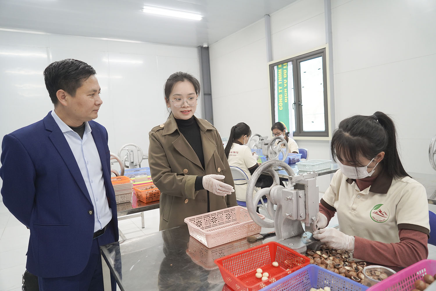 Đại biểu tham quan quy trình sản xuất Macca Yên Tử.