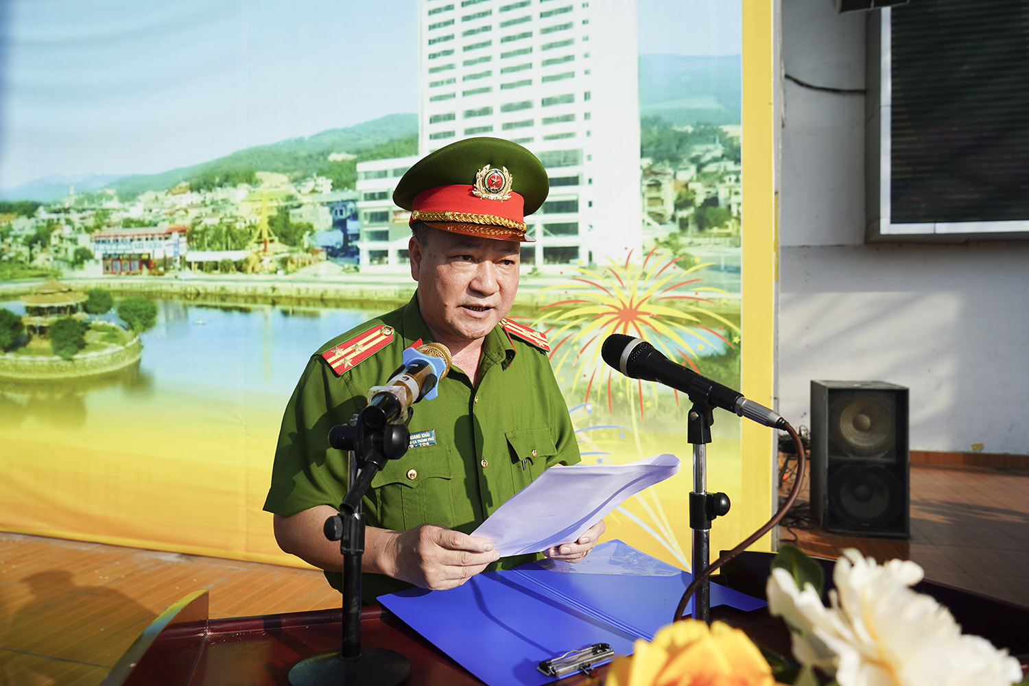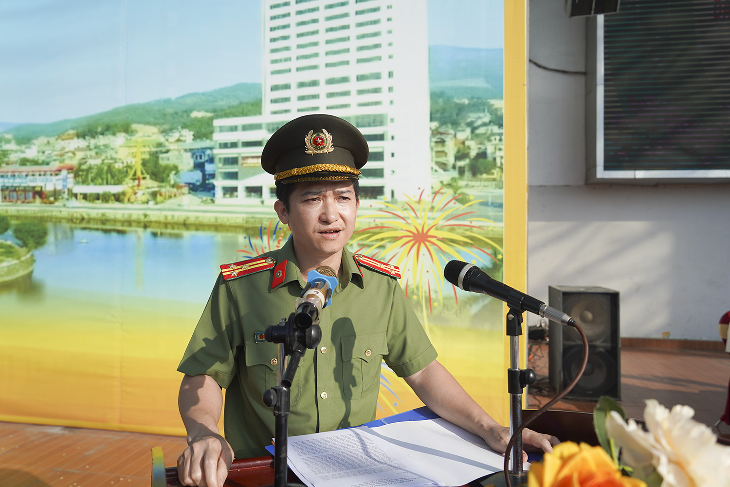 Thượng tá Mai Thế Quang, Phó Giám đốc Công an tỉnh phát biểu tại buổi lễ.