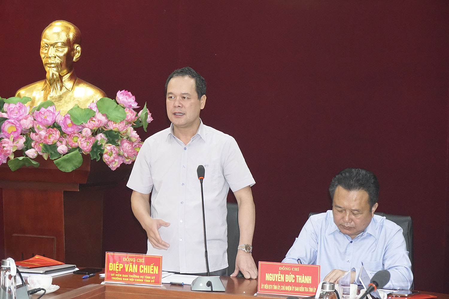 Đồng chí Điệp Văn Chiến, Ủy viên Ban Thường vụ Tỉnh ủy, Trưởng Ban Nội chính Tỉnh ủy, phát biểu tại buổi làm việc.