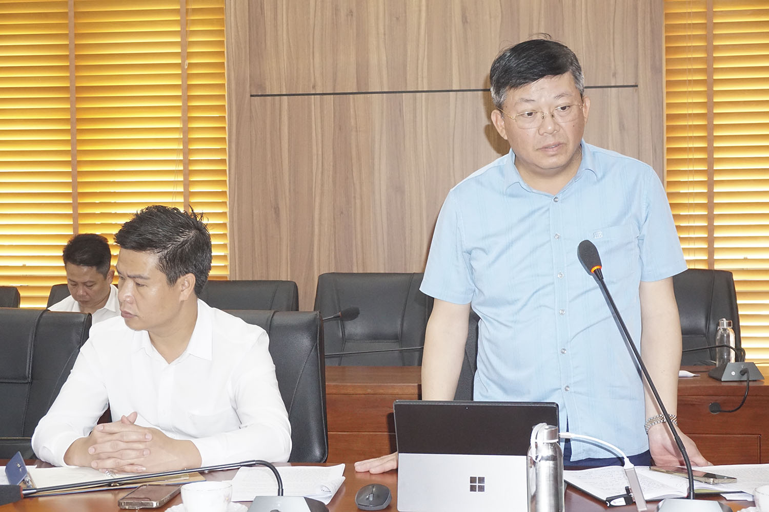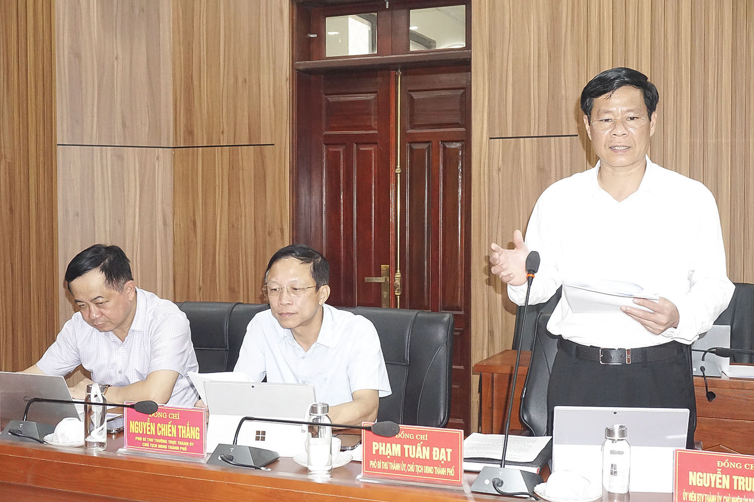 Đồng chí Phạm Tuấn Đạt, Phó Bí thư Thành ủy, Chủ tịch UBND thành phố Uông Bí, báo cáo tại buổi làm việc.