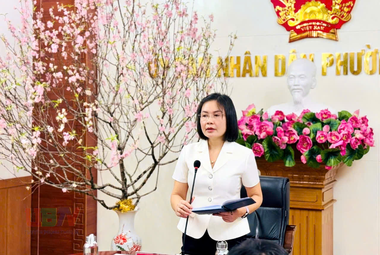 Đồng chí Vũ Thị Hồng Nhung, Phó Chủ tịch UBND phường phát biểu kết luận cuộc họp.