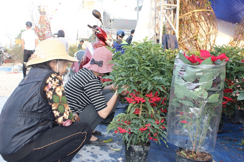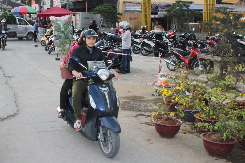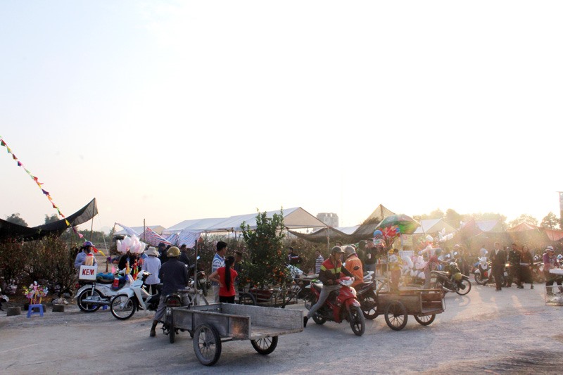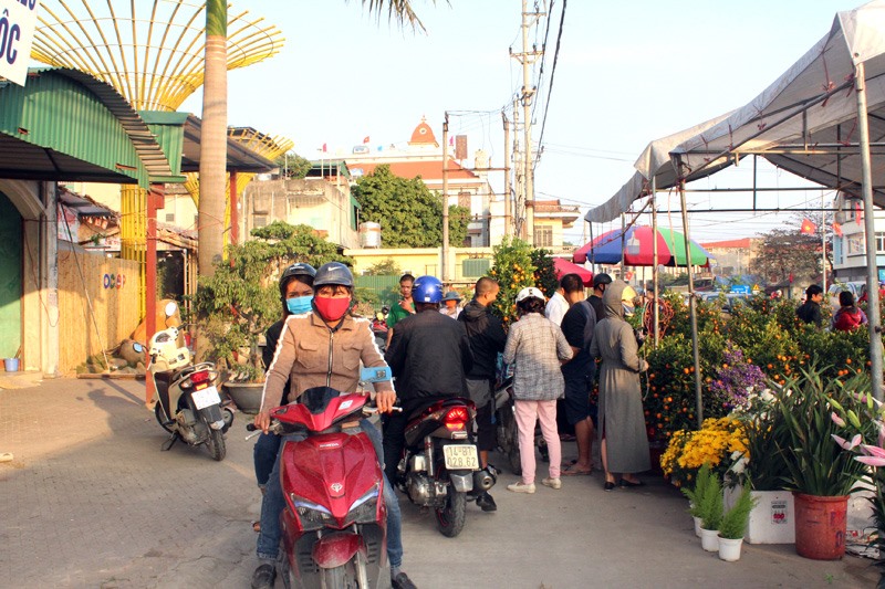 Khung cảnh chợ hoa xuân Uông Bí chiều 28 Tết âm lịch.