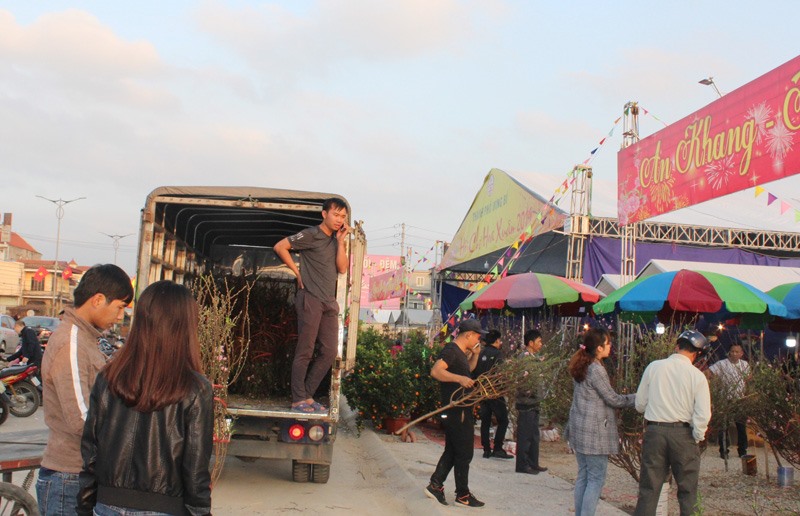 Hàng liên tục được vận chuyển đến chợ hoa xuân.