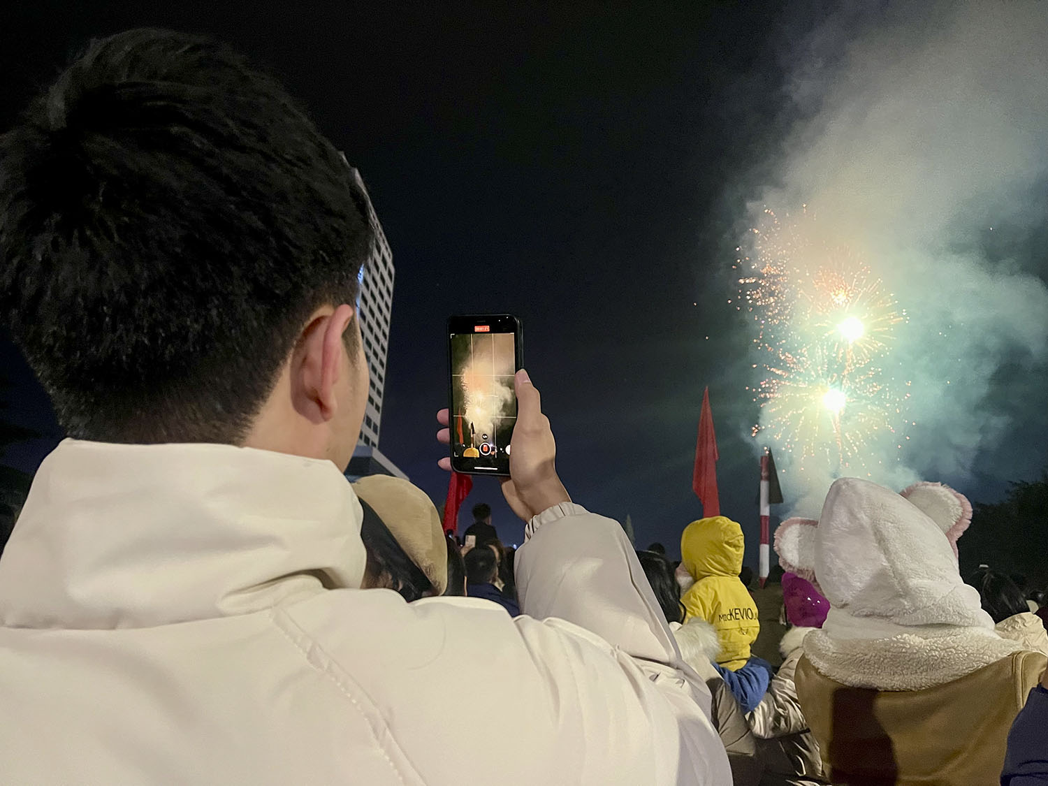 Người dân đón xem pháo hoa chào năm mới Giáp Thìn năm 2024.