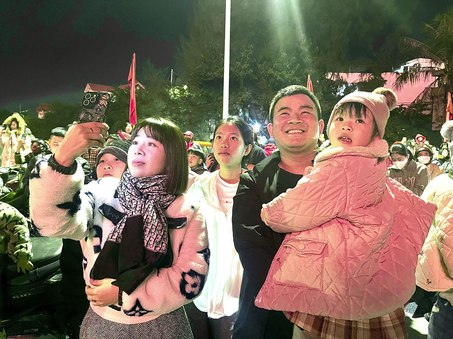 Đúng 23h ngày 09/2 - trước thời khắc chuyển giao giữa năm cũ 2023 và năm mới 2024, tại khu vực Hồ Công viên, phường Quang Trung, hàng nghìn người dân TP Uông Bí hào hứng chiêm ngưỡng màn bắn pháo hoa rực rỡ và cùng ước nguyện về một năm mới bình an.