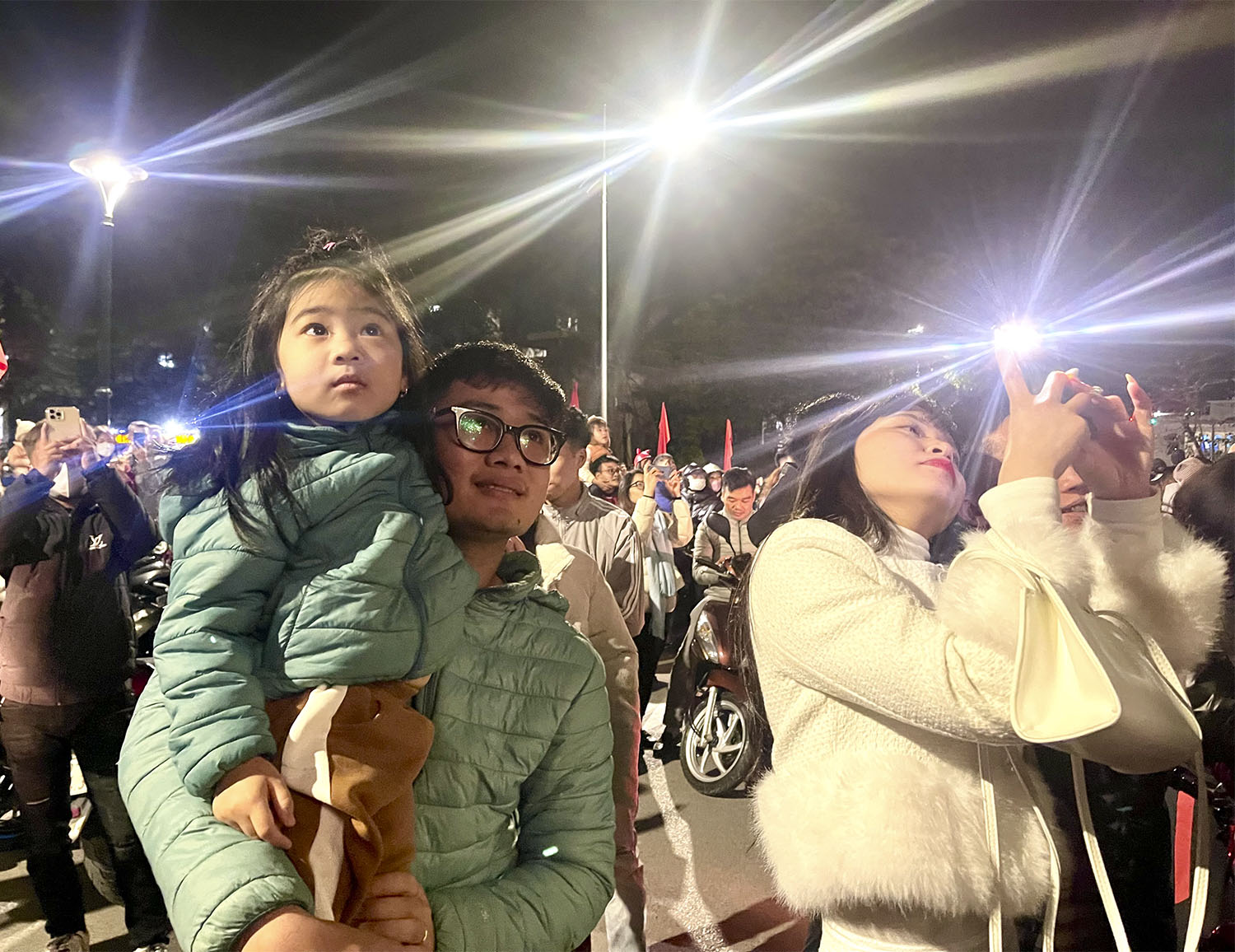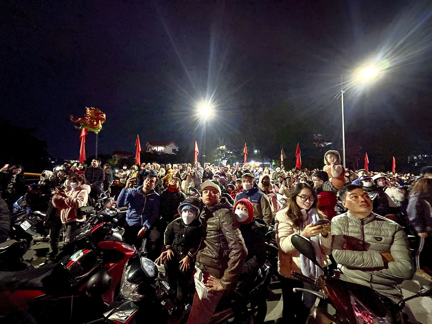 Ngay từ sớm, đông đảo người dân và du khách đã đổ về khu vực Quảng trường 25/2 và Hồ Công viên để đón xem chương trình nghệ thuật Khiêu vũ, dân vũ - Dạ hội Thanh niên và xem bắn pháo hoa. Màn bắn pháo hoa đặc sắc khéo dài 15 phút đã tạo nên những khoảnh khắc rực rỡ trước thời khắc giao thừa. Pháo hoa rực sáng bầu trời như gửi gắm niềm vui, phấn khởi của người dân về những thành tựu phát triển kinh tế - xã hội của thành phố Uông Bí, tỉnh Quảng Ninh trong năm qua, lạc quan vào một năm mới khởi sắc, hạnh phúc với nhiều thắng lợi mới.