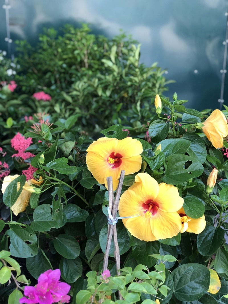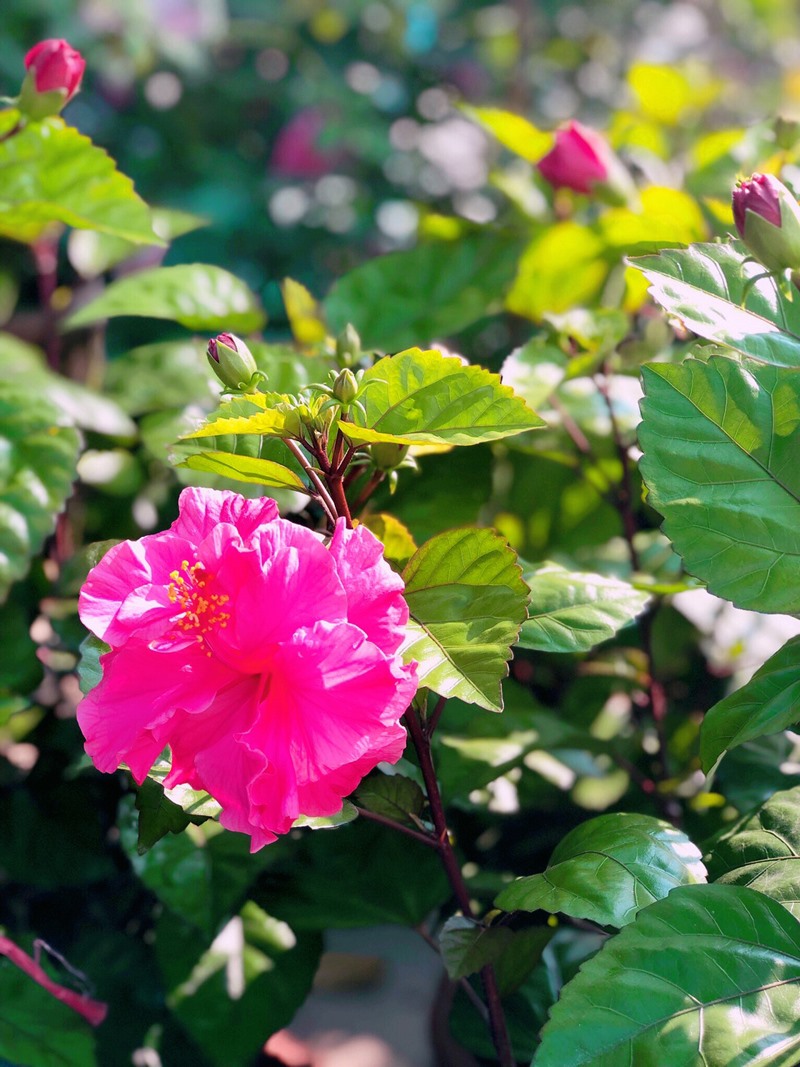 Góc hoa dâm bụt đủ màu bên cẩm chướng, hải đường, hoa xác pháo.