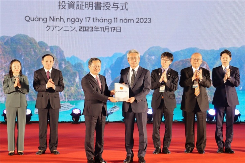 Chủ tịch UBND tỉnh Cao Tường Huy trao Giấy Chứng nhận đăng ký đầu tư cho nhà đầu tư đến từ Nhật Bản.