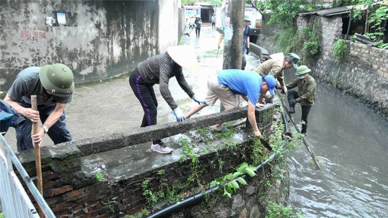Người dân khu Tân Lập 6, phường Cẩm Thủy (TP Cẩm Phả) vệ sinh kênh mương.