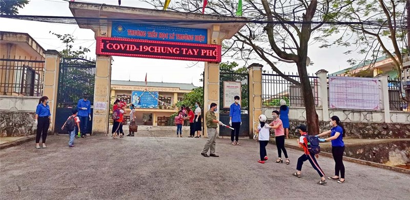 Tại Trường Tiểu học Lý Thường Kiệt, sáng nay, trường đón trên 500 học sinh đi học vào các ngày: thứ 2, thứ 4 và thứ 6 trong tuần. Để đảm bảo tốt nhiệm vụ phòng chống dịch, mọi công tác chuẩn bị, đưa đón học sinh đều được nhà trường tiến hành kỹ lưỡng. Ngay từ ngoài cổng vào, nhà trường đã phối hợp với các lực lượng an ninh xung kích, đoàn viên thanh niên địa phương thực hiện phân luồng, giãn cách, trực tiếp đo thân nhiệt và yêu cầu học sinh rửa tay xịt khuẩn trước khi vào lớp.