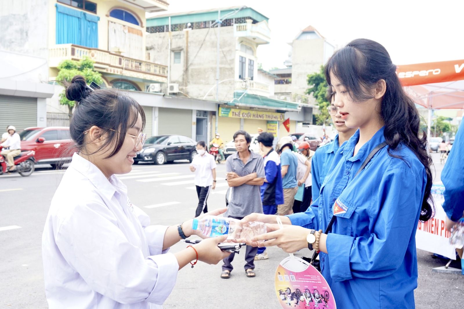 Lực lượng đoàn viên thanh niên tiếp sức mùa thi cho thí sinh tại điểm thi.