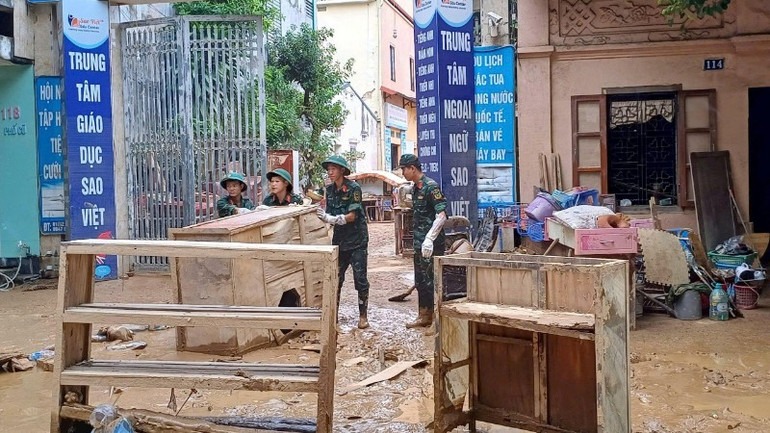 Vệ sinh, khắc phục hậu quả mưa lũ, ngập lụt tại tỉnh Cao Bằng. (Ảnh: MINH TUẤN)