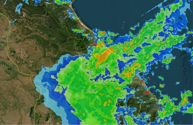Hoàn lưu áp thấp nhiệt đới di chuyển từ phía Nam đến khu vực tỉnh Quảng Trị. Nguồn ảnh: Đài Khí tượng thủy văn Quảng Trị.