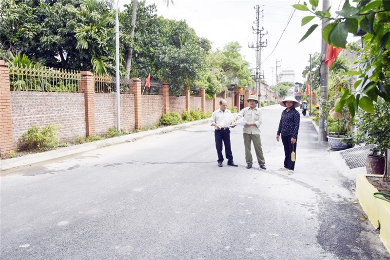 Ban Giám sát đầu tư của cộng đồng khu phố Vĩnh Hồng (phường Mạo Khê, TX Đông Triều) giám sát việc nâng cấp, thi công tuyến đường trục chính ở khu phố. Ảnh: Trúc Linh