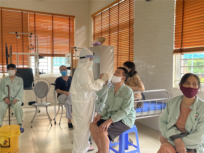 Lấy mẫu xét nghiệm SARS-CoV-2 cho người bệnh đang điều trị tại Bệnh viện Y dược cổ truyền tỉnh, tháng 10/2021.