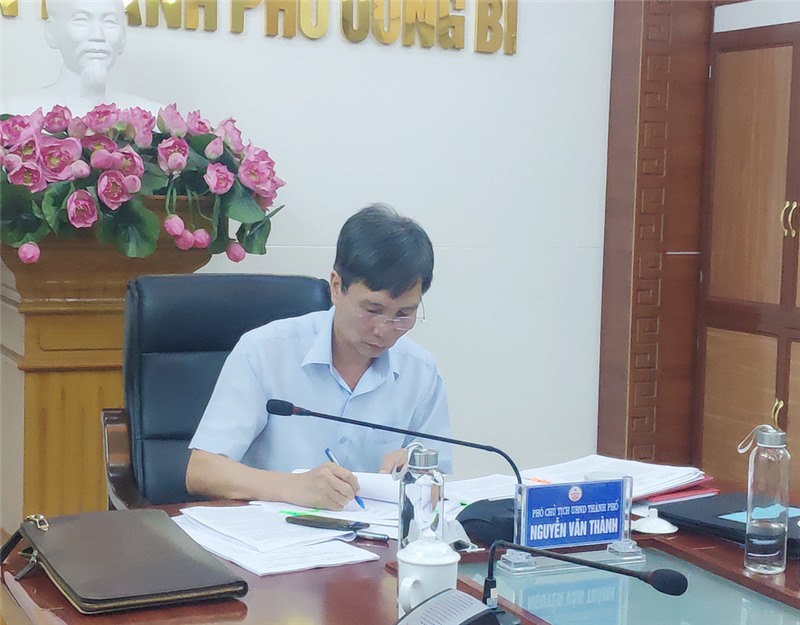 Đồng chí Nguyễn Văn Thành, UVBTV Thành ủy, Phó Chủ tịch UBND thành phố chủ trì dự hội nghị tại điểm cầu thành phố Uông Bí.