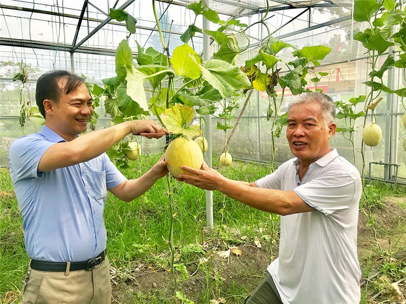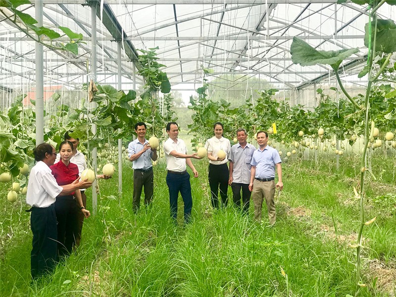Đại biểu tham quan mô hình trồng dưa lê vân lưới tại HTX Hương Việt.