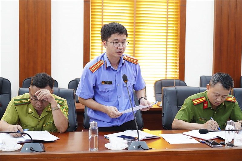 Lãnh đạo VKS Nhân dân Uông Bí báo cáo kết quả thực hành quyền công tố và kiểm sát hoạt động Tư pháp.