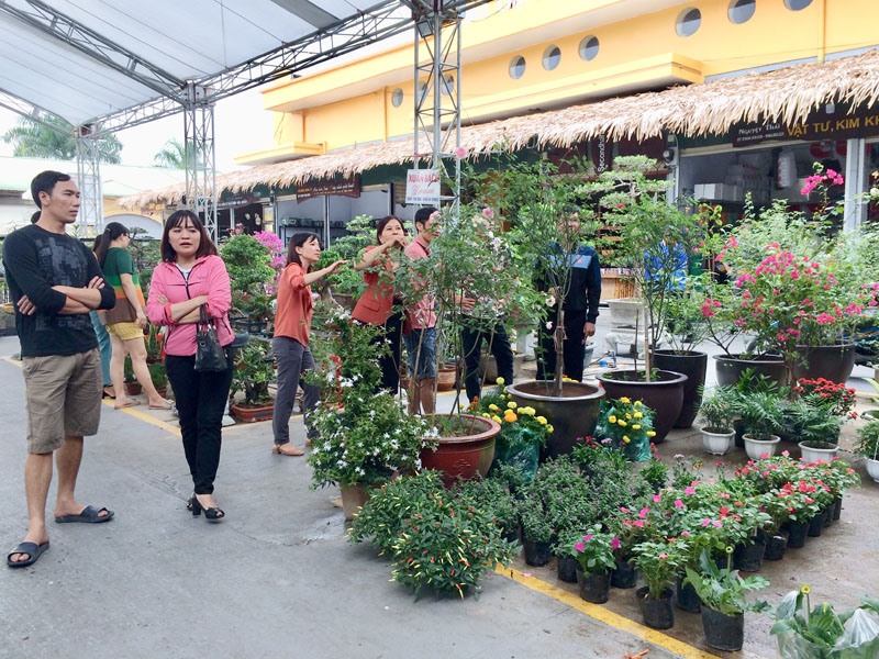 Quầy bán hoa, cây cảnh thu hút đông đảo khách mua hàng.