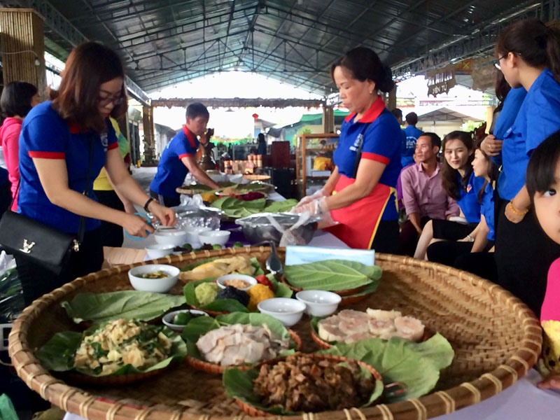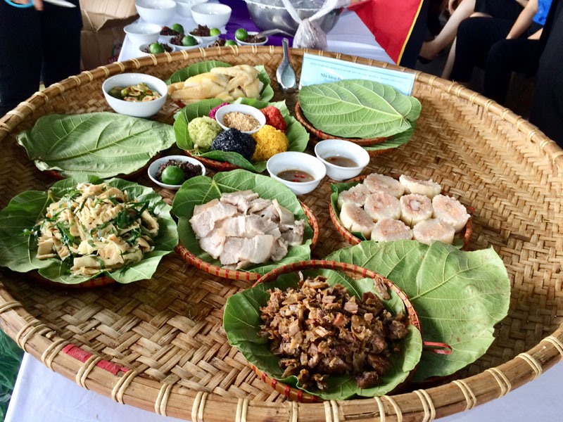 Chuẩn bị tiệc buffet với các món ăn của người Dao Thanh y.