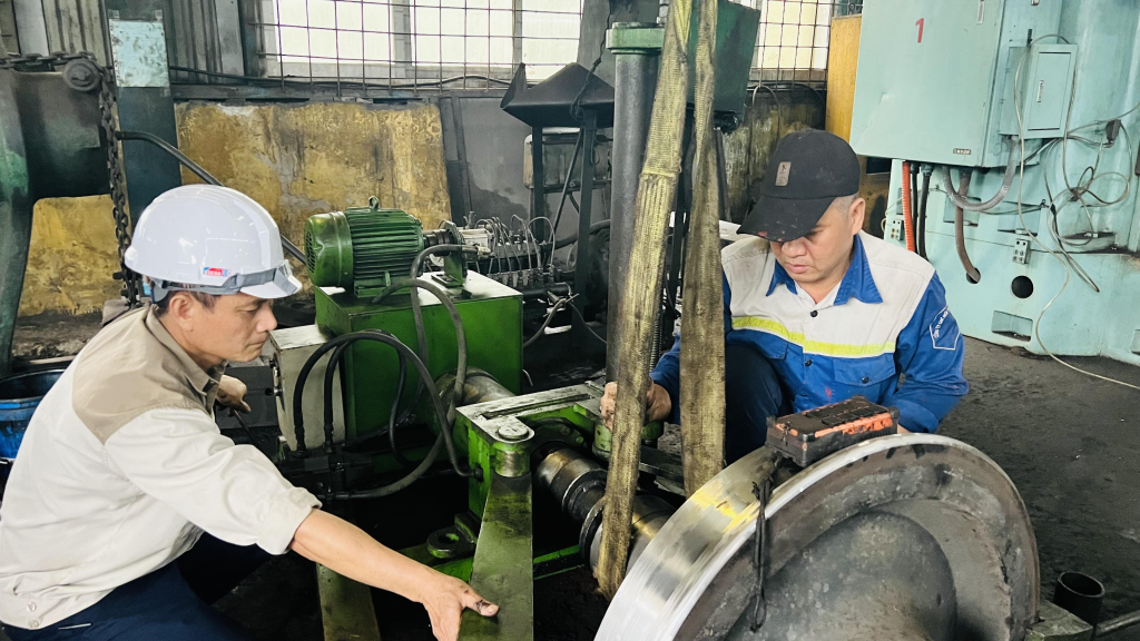 Anh Quyền chia sẻ: Trong điều kiện công ty vẫn còn hạn chế, phải nhập thiết bị, công nghệ, có những thiết bị siêu trường, siêu trọng, việc tháo lắp các chi tiết gặp rất nhiều khó khăn, mất nhiều thời gian, vì vậy tôi đã tìm tòi và nghiên cứu chế tạo bộ dưỡng tháo lắp vòng bi cặp trục bánh xe 30 tấn để việc tháo lắp, sửa chữa đỡ vất vả…