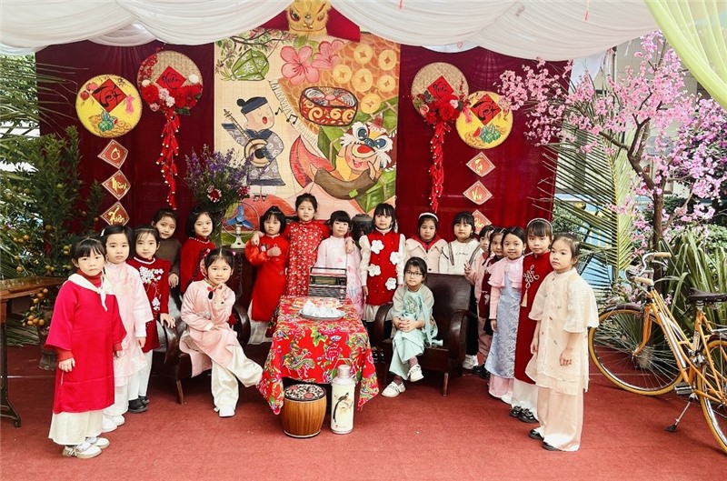 Chương trình diễn ra trong không khí tươi vui, rộn rã. 5 khối học sinh của nhà trường đã dự thi 5 tiết mục văn nghệ đặc sắc, phác hoạ hình ảnh ngày Tết cổ truyền đậm nét văn hoá truyền thống Việt Nam. Các tiết mục tạo ấn tượng bởi giai điệu xuân tươi vui, những bộ trang phục rực rỡ sắc màu hoà cùng hoa đào, hoa mai khoe sắc.
