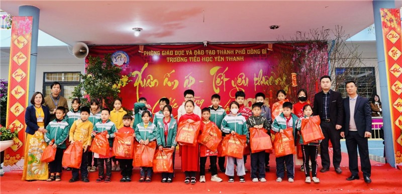 Cũng tại đây, Trường Tiểu học Yên Thanh đã trao tặng 40 suất quà Tết cho 40 học sinh có hoàn cảnh khó khăn, mồ côi, khuyết tật đang học tập tại trường; động viên các em cố gắng vươn lên trong học tập và cuộc sống.