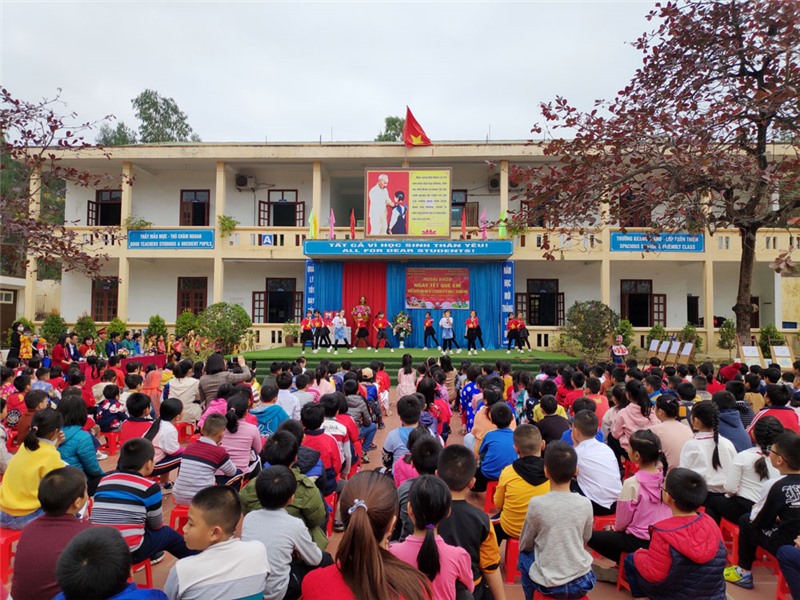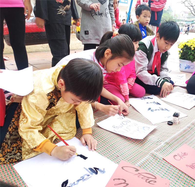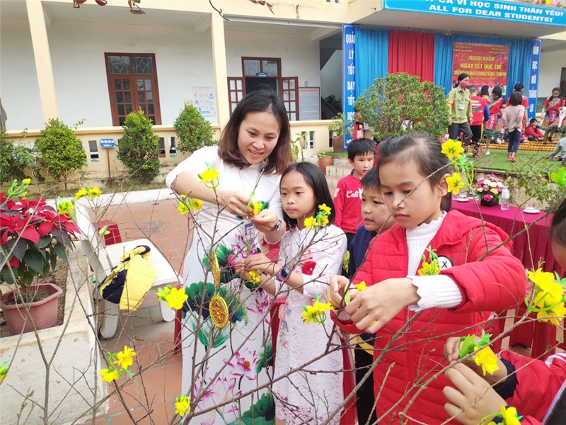 Mở đầu chương trình, các em học sinh đã được thưởng thức một chương trình văn nghệ đặc sắc mang âm hưởng tươi vui náo nức của mùa xuân. Trong chương trình, các em cũng được tham gia, tìm hiểu về những phong tục, truyền thống trong dịp Tết của các dân tộc thông qua trò chơi dân gian và các gian hàng như: bịt mắt bắt vịt, bịt mắt đập niêu, kéo co, trò chơi nhảy sạp, ném còn, gian hàng thư pháp, trang trí cây đào, cây mai đón Tết.