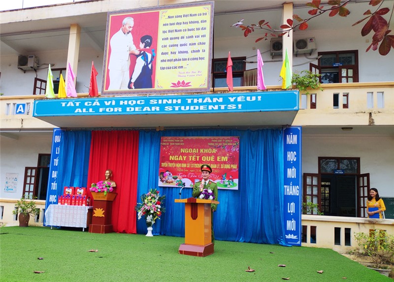 Trong chương trình, lãnh đạo Công an phường Thanh Sơn đã giới thiệu tới các đại biểu và học sinh một số nội dung của Nghị định 137/2020/NĐ-CP về quản lý sử dụng pháo.