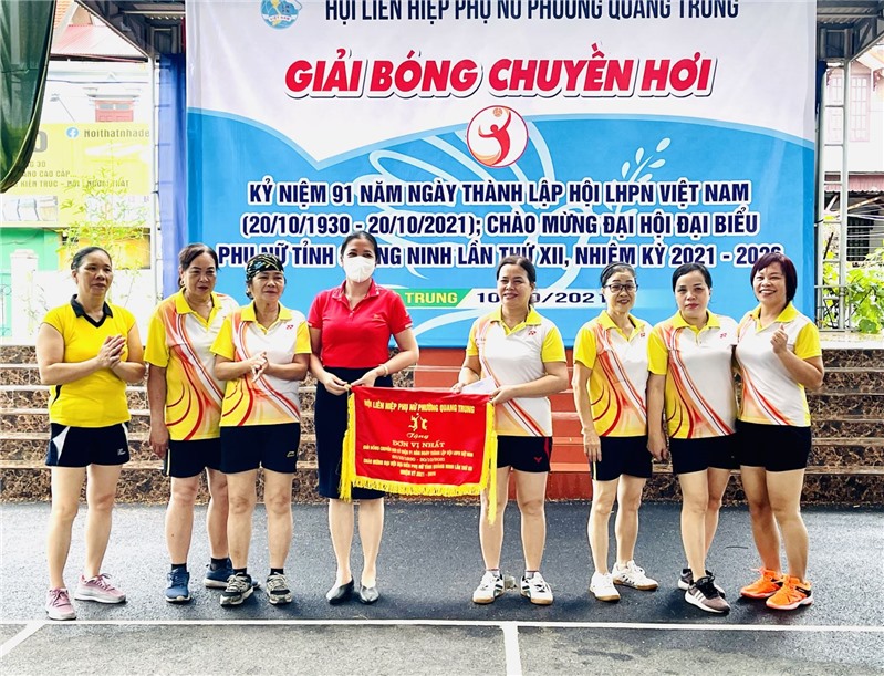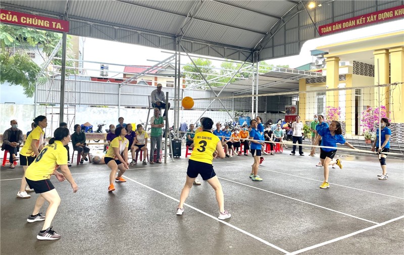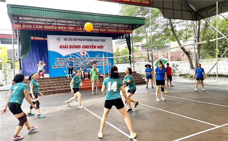 Không khí sôi nổi tại giải bóng chuyền hơi Hội LHPN phường Quang Trung.