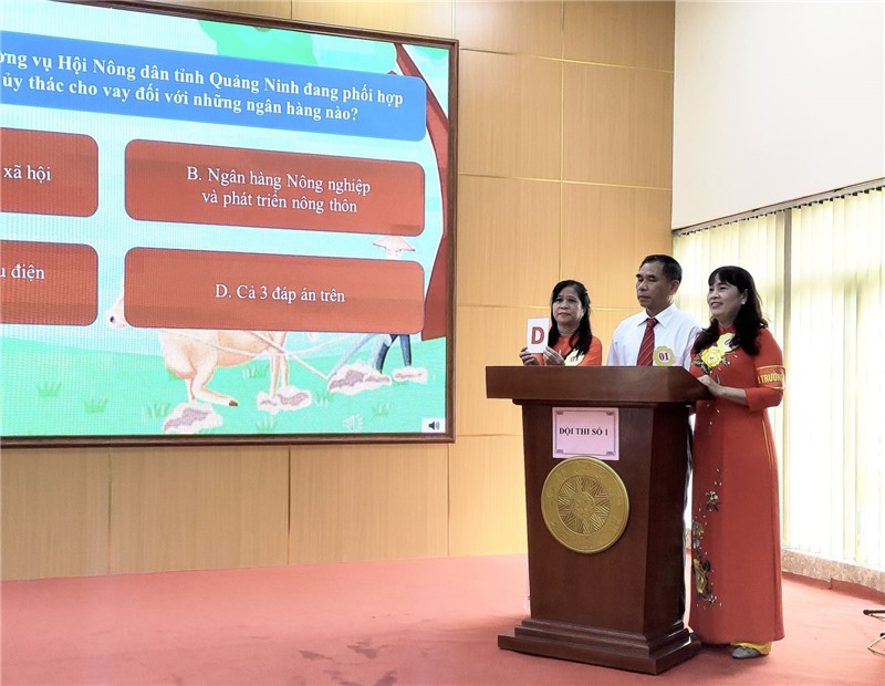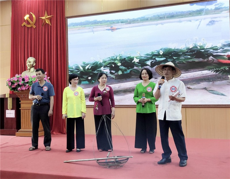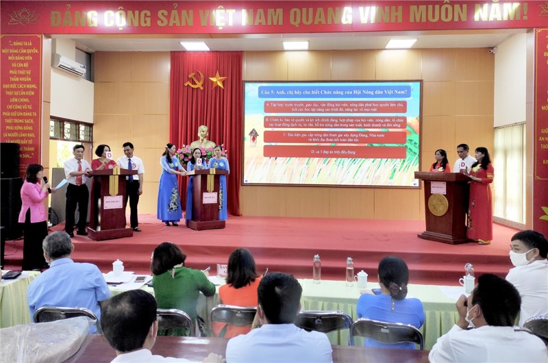 Trong phần thi nghe nông dân nói, các đội chơi đã thảo luận, chia sẻ nhiều cách làm hay trong xây dựng tổ chức hội; các giải pháp nâng cao nhận thức về bảo vệ môi trường, sản xuất nông nghiệp an toàn, đảm bảo VSATTP; quảng bá sản phẩm khoai lang hai nước Điền Công.