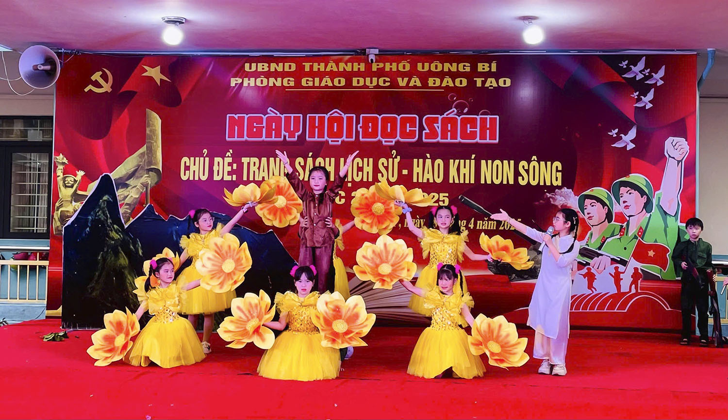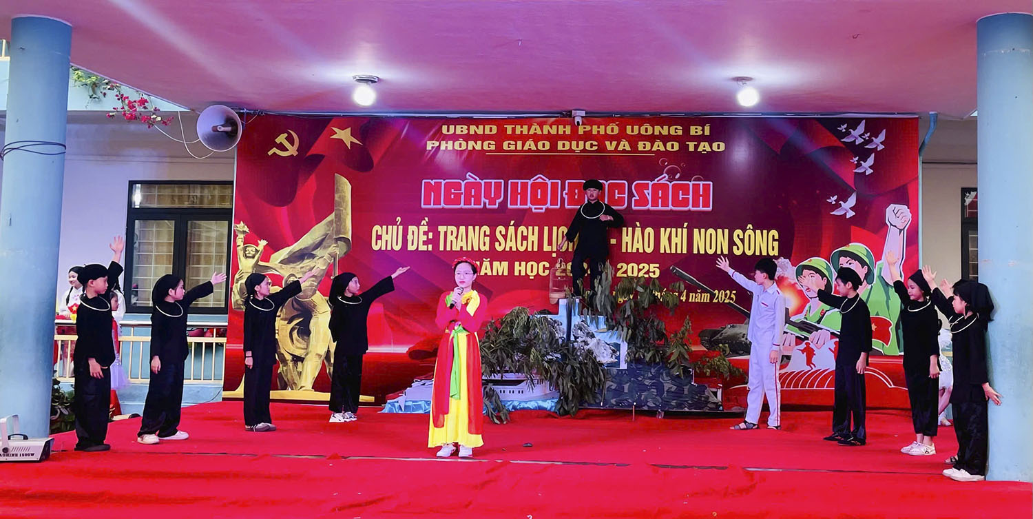Ngày hội đọc sách năm học 2024-2025 của Trường Tiểu học Yên Thanh với chủ đề “Trang sách lịch sử - Hào khí non sông”. Mở đầu chương trình là các tiết mục văn nghệ do học sinh, giáo viên nhà trường biểu diễn. Hình ảnh những chiến sĩ Bộ đội Cụ Hồ, những năm tháng chiến tranh ác liệt được phác hoạ chân thực, xúc động trong các tiết mục. Từ đó, khơi dậy trong giáo viên, học sinh niềm tự hào dân tộc, lòng yêu nước, sự biết ơn đối với các anh hùng liệt sĩ, thương binh đã hy sinh xương máu vì nền độc lập, tự do của dân tộc.